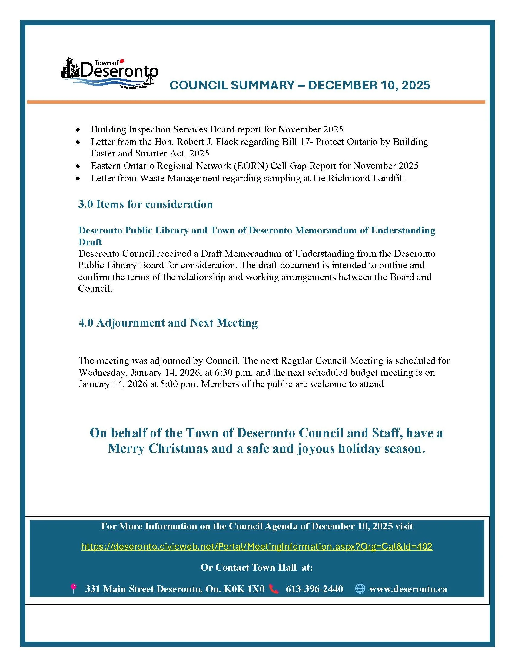 Council Summary - December 10, 2025