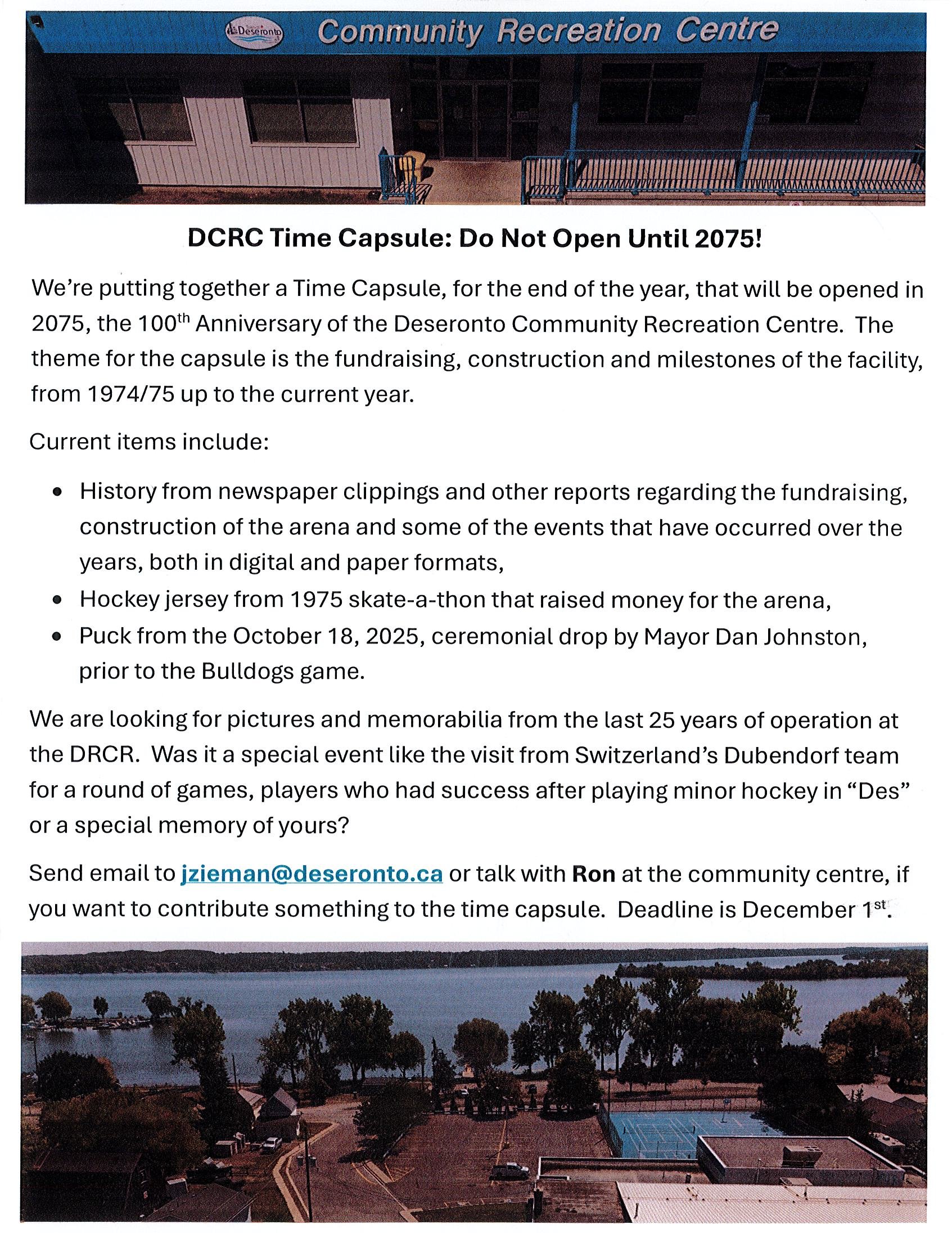 Pamela Miller November 13, 2025 Deseronto Community Recreation Centre - Time Capsule Pamela Miller November 13, 2025