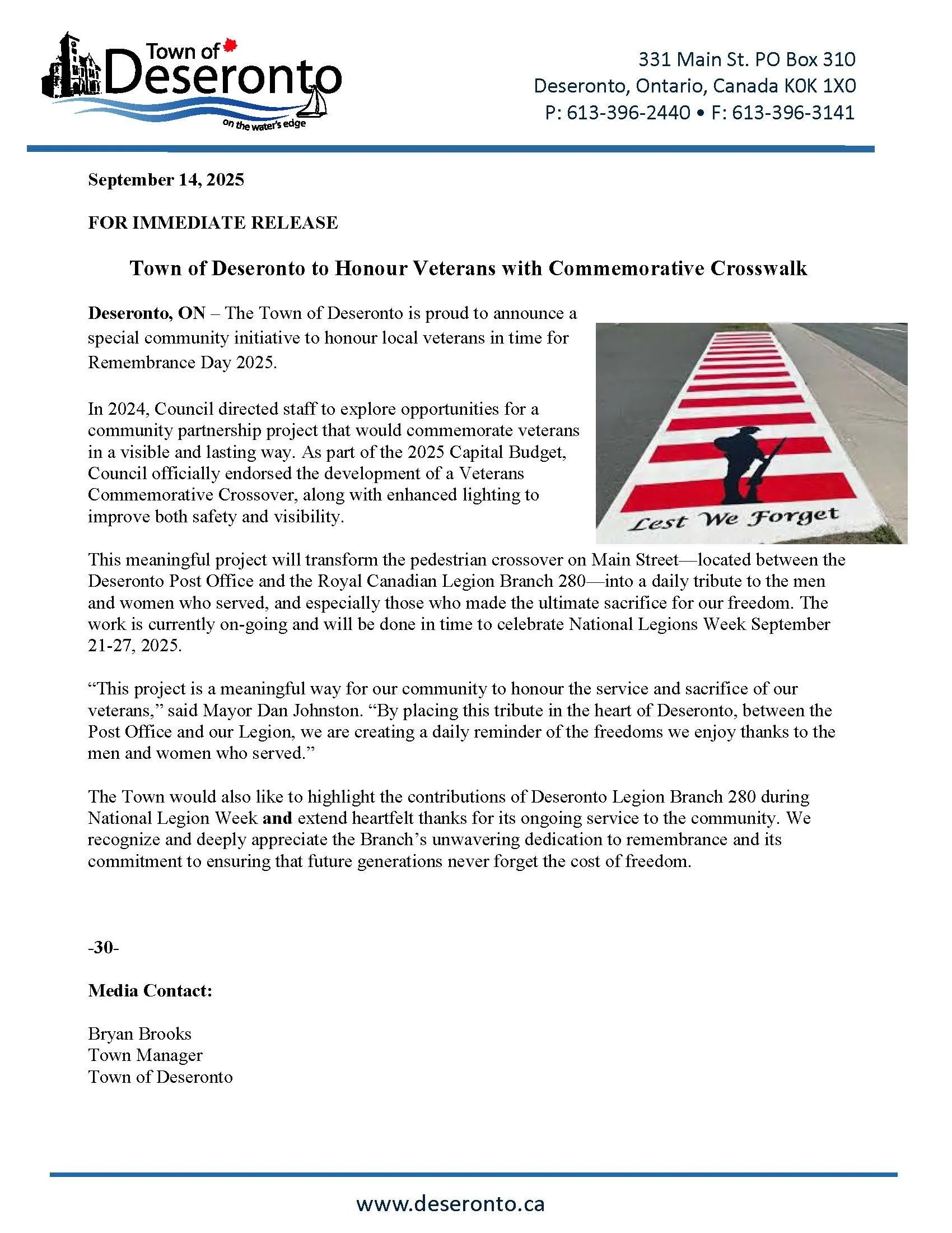 Pamela Miller September 16, 2025 Town of Deseronto Commemorative Crosswalk Pamela Miller September 16, 2025