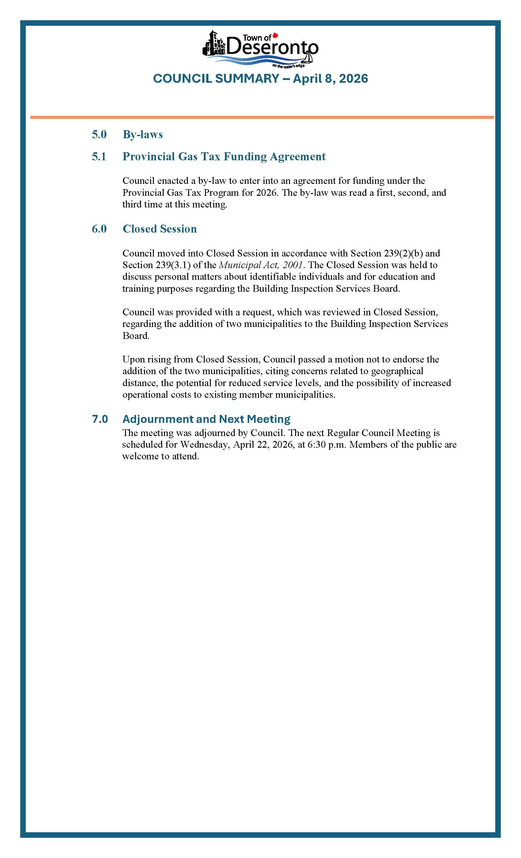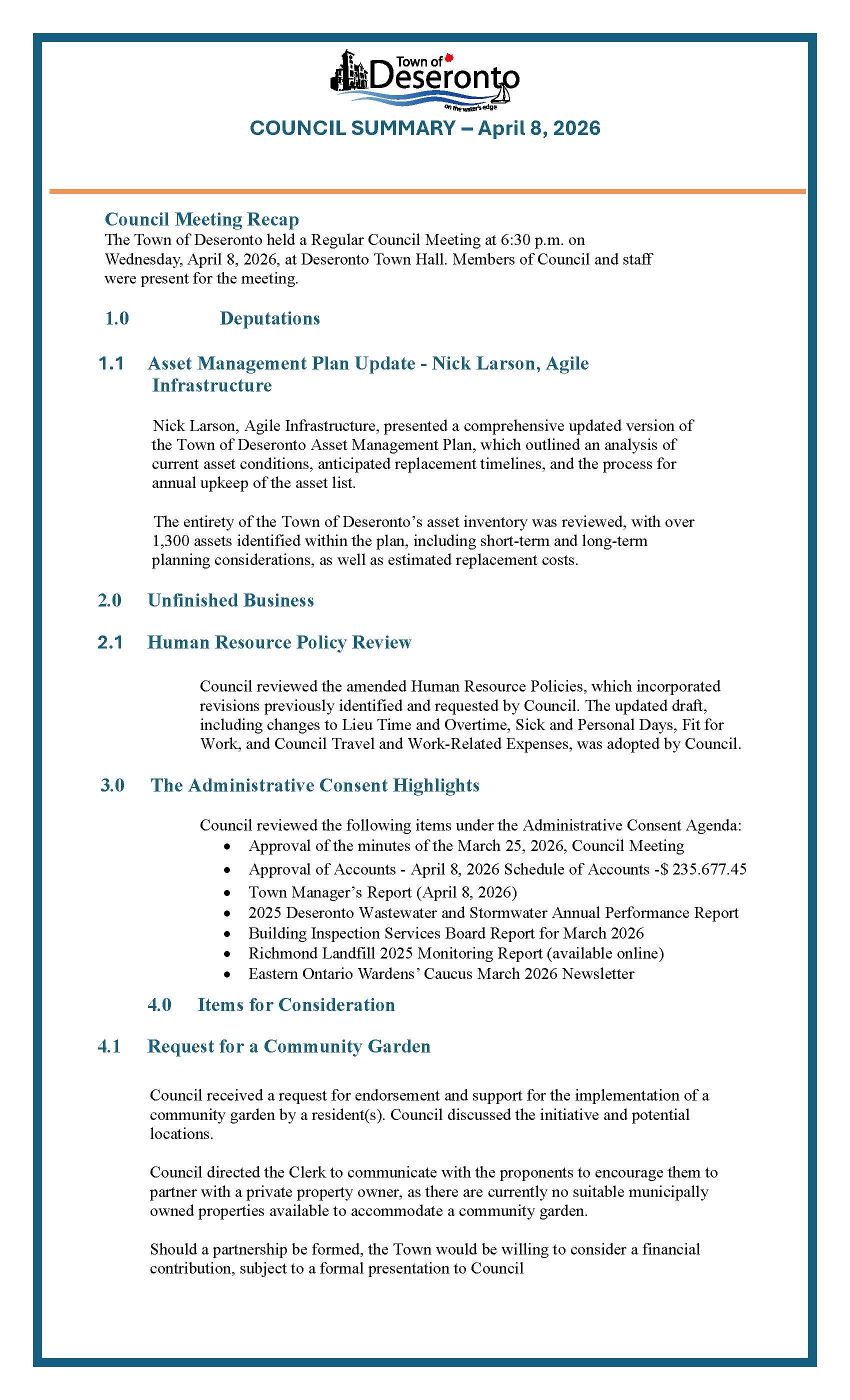 Council Summary - April 8, 2026