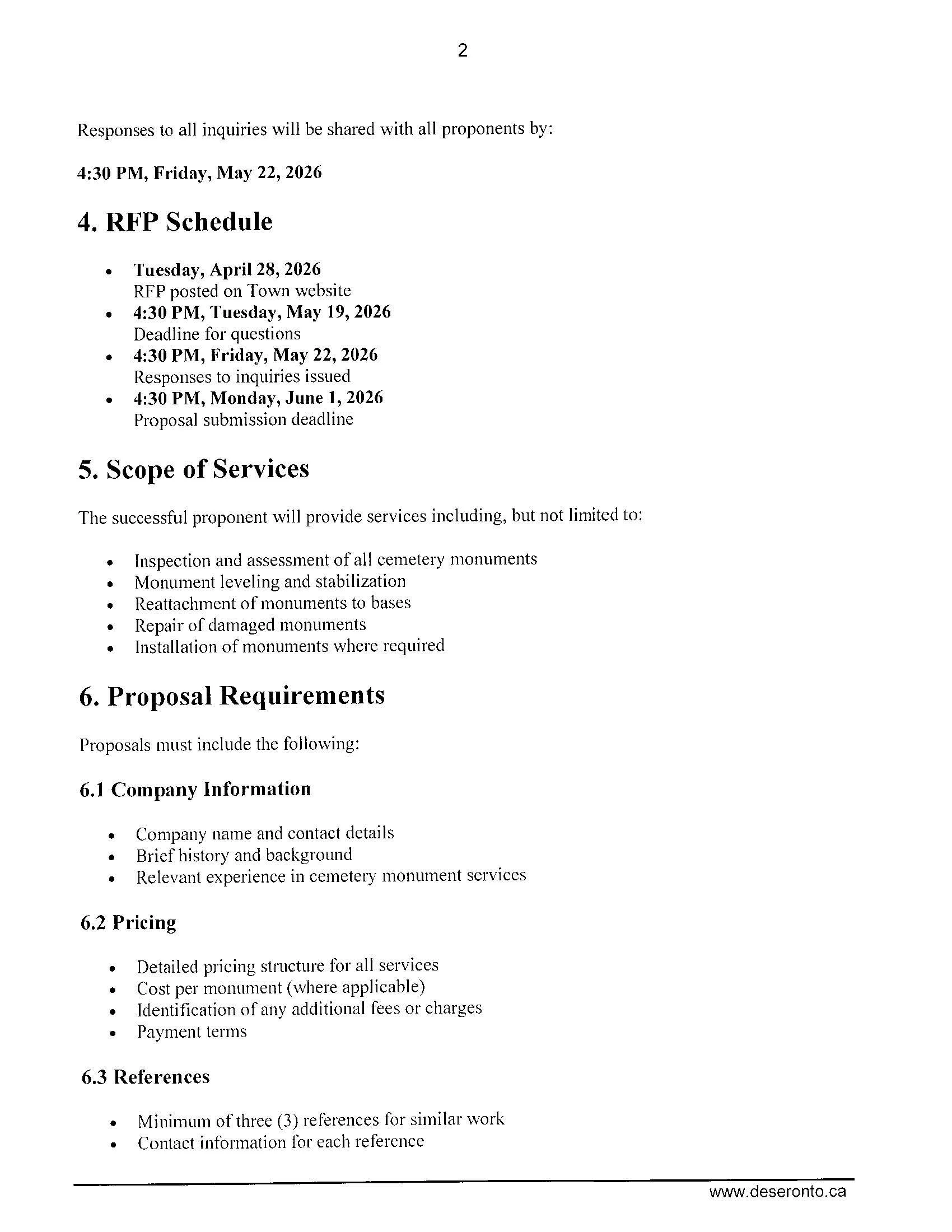 Pamela Miller April 30, 2026 RFP - Cemetery Monument Repair and Restoration Services Pamela Miller April 30, 2026